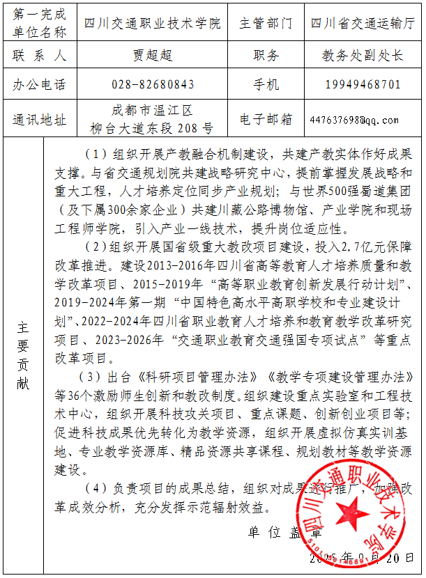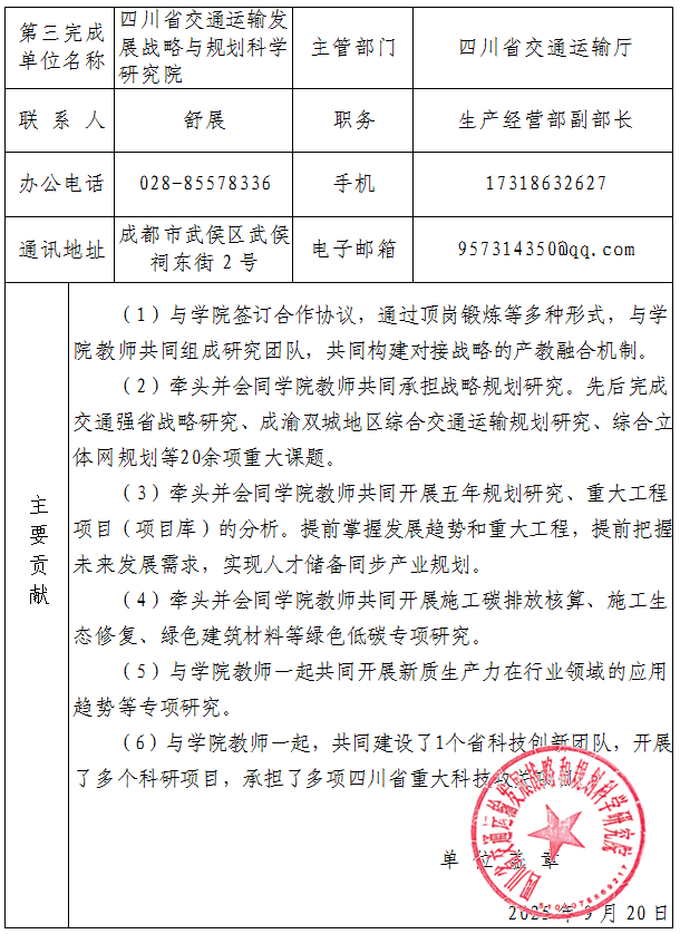 第三主要完成单位:四川省交通运输发展战略与规划科学研究院